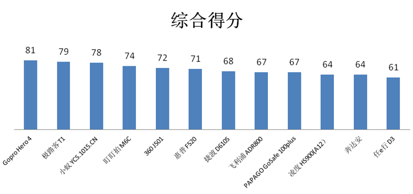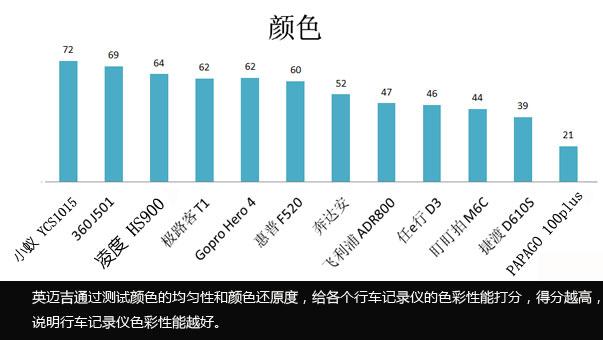 我们通过测试颜色的均匀性和颜色还原度,给各个行车记录仪的色彩性能打分,结果如下。