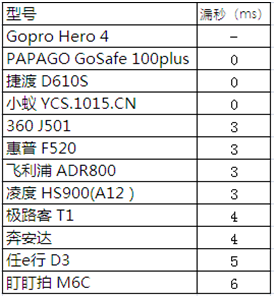 英迈吉对各款行车记录仪进行了漏秒性能测试,测试结果如下。