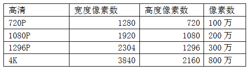 现有的行车记录仪均标称是高清行车记录仪,标示了720P,1080P,1296P,这些参数代表了什么呢?大家且看下表: