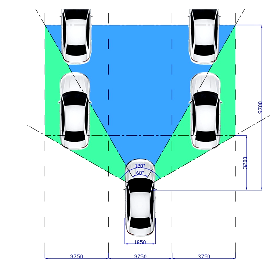 笔者认为视场角以接近120度为佳,可覆盖整个车头,而且3米远外即可覆盖三车道,一旦发生事故,相邻车道的车况可一览无余。