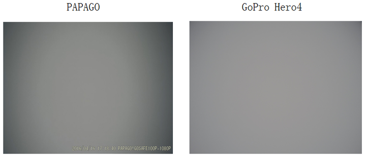 PAPAGO水平视场角虽然只有80度,但其暗角却比水平视场角118°的GoPRO Hero4还要差很多,出现了明显的暗角,如下图: