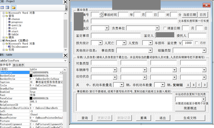 通过下图的Word+VBA,完成主要的交互界面并连接计算软件。在通过简单的交互获取主要信息后,在后台完成计算并将主要信息填写入八股文的Word模版,最终完成报告,同时将结构化的信息存入Access数据库。