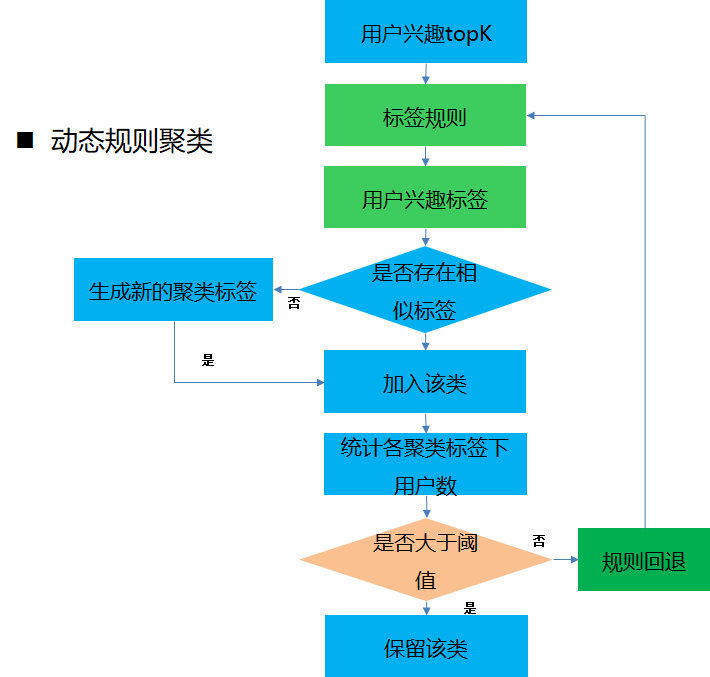 - 如果该类别下的用户数大于阈值,则该聚类标签可以保留,否则该聚类标签需要和其他聚类标签合并
