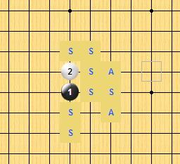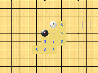 直指如图,标记S的点(黑棋第三手的走法)都是可以必胜的,标记A的点优势也非常大,一般都可以获胜。