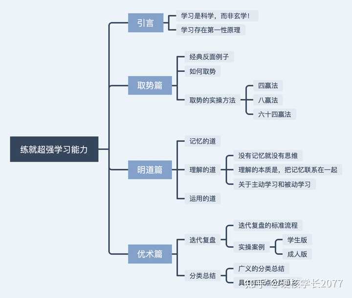 所谓学习的优术,就是我们在学习中,必须要学会的两招基本技术。只要有了这两招的术,上文提到的取势、明道,都是能从优术的过程中,自己总结出来的。