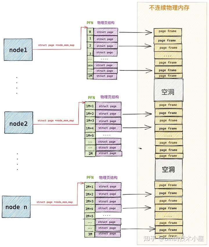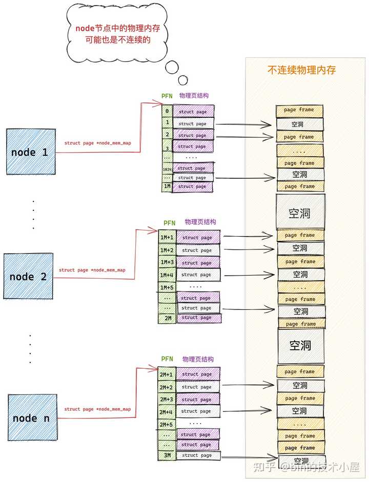 随着内存技术的发展,内核可以支持物理内存的热插拔了(后面笔者会介绍),这样一来物理内存的不连续就变为常态了,在上小节介绍的 DISCONTIGMEM 内存模型中,其实每个 node 中的物理内存也不一定都是连续的。
