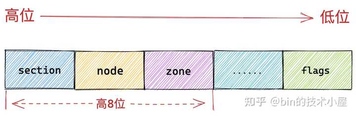 在 struct page 结构中有一个 unsigned long flags 属性,在 flag 的高位 bit 中存储着 page 所在 mem_section 数组中的索引,从而可以定位到所属 section。