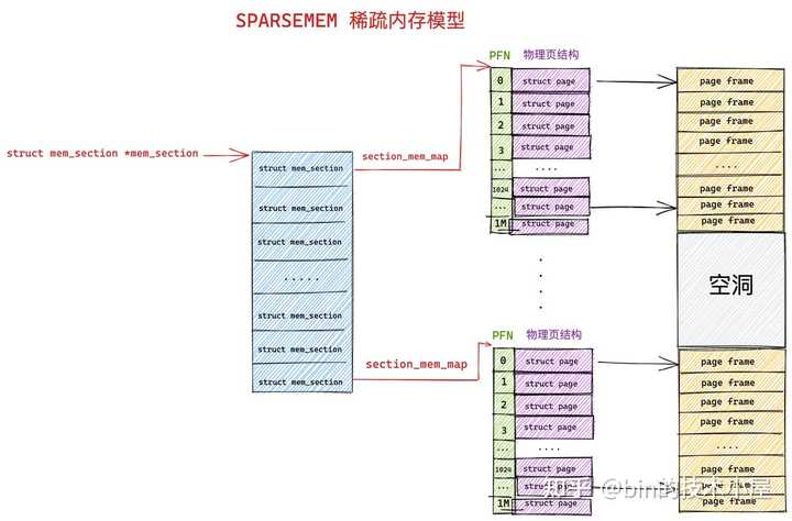 前面提到随着内存技术的发展,物理内存的热插拔 hotplug 在内核中得到了支持,由于物理内存可以动态的从主板中插入以及拔出,所以导致了物理内存的不连续已经成为常态,因此内核引入了 SPARSEMEM 稀疏内存模型以便应对这种情况,提供对更小粒度的连续物理内存的灵活管理能力。