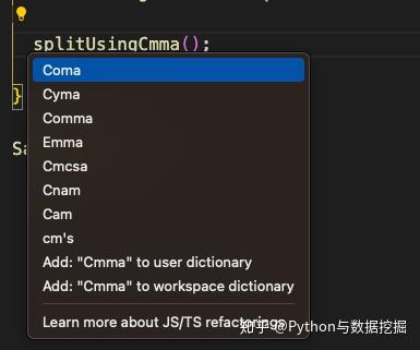 此扩展检查常见的拼写错误,在错误拼写的单词下会出现一个小的波浪下划线,在代码的左侧会出现一个小灯泡。单击它时,你将能够看到正确拼写的建议,如图所示。