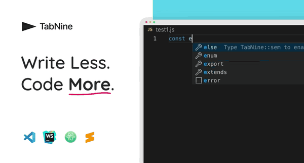 TabNine 是一个几乎支持任何编程语言的自动完成助手。它通过使用AI和索引来形成最合理的代码提示。TabNine 使用的机器学习模型存储在本地文件系统中。大多数来自 TabNine 的 VSCode 自动完成组件都会以一个百分比的置信度出现。
