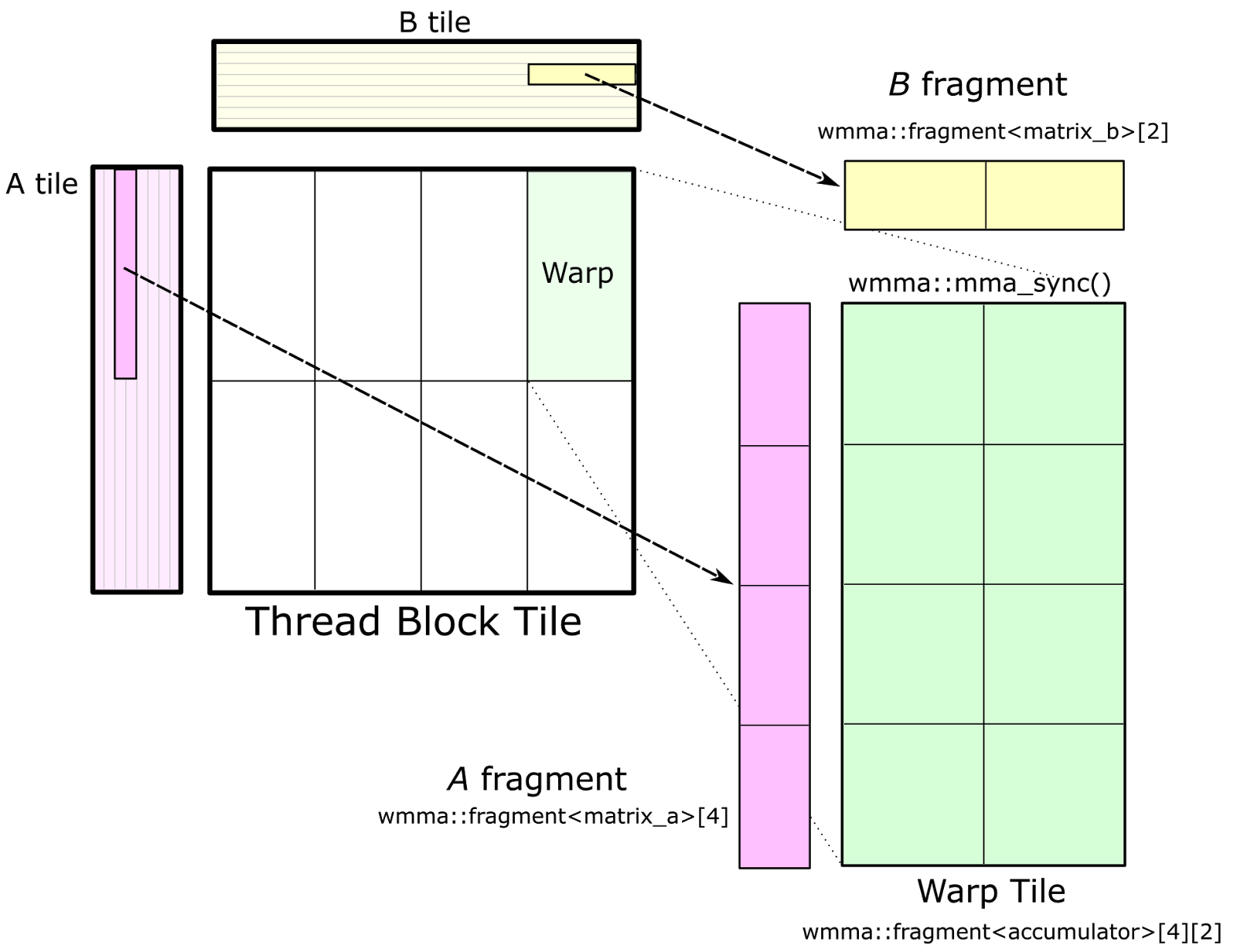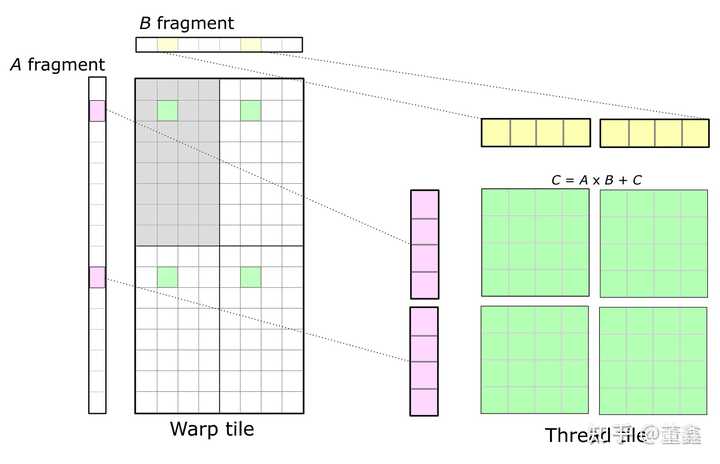 这里的 Warp tile 代表这一整个 tile 都是由一个 Warp 完成的.