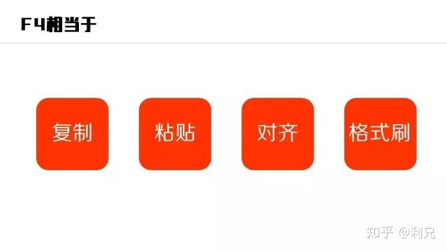 一个是PPT里面的F4,在EXCEL或者word里面也可以用。Office中的“F4” = 重复上一步操作。