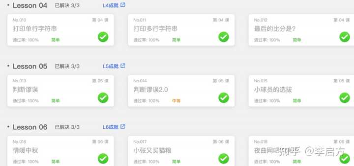 3、配套中设置的题目,很接近日常工作和生活需求,虽说和工作中遇到的有差别,但是便于平时调用时候的编程思维的搭建;学完课程缺乏编程练习——【百题斩】,共100道课后习题,及时反馈,practice makes perfect