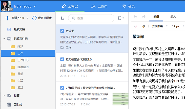 不仅仅是公司,在个人的办公中,同样需要注意制定流程对工作进行规划。现在很多工作都是支离破碎的,在公司做完回到家还要继续做,很有可能还要在不同设备间切换,怎么办?借用外部工具啊,下个有道云笔记,每天同步保存一下,花不了你多一分钟,地铁上,被窝里,都能随时同步编辑,随时可以对工作进行整理规划,工作内容、流程丝毫不会丢失。这样是不是用了前期走流程的成本,换来了工作效率的大幅度提高呢?