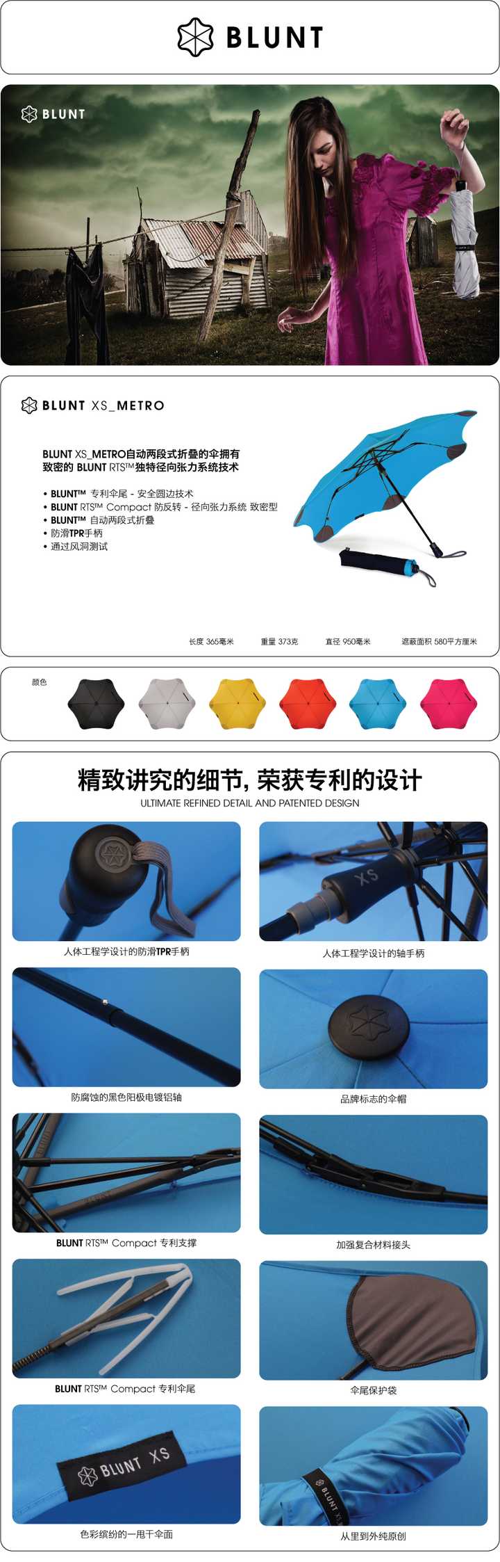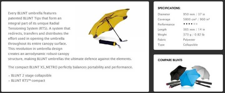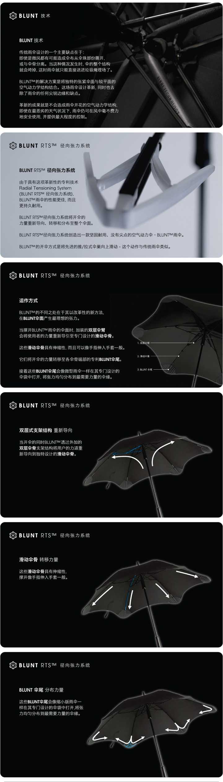 到底这把伞有什么牛B的地方呢,就是BLUNT的技术