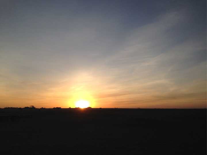 我们日出的时候出发,已经不怎么冷了~右边的小白点是月亮~