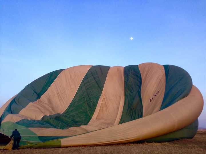 早晨四点多Camp的服务员已经准备好咖啡和小点心,等待热气球中心的越野来接我们。当我们到达时天还没亮,有几个老太太在那等待,头顶月亮的对面就是日出的方向。